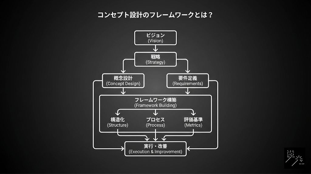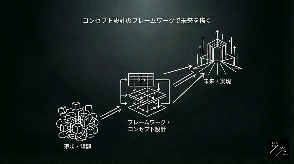 コンセプト設計は、単なるアイデア出しではなく、論理的思考に基づいた体系的なプロセスです。